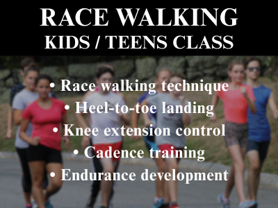 A structured class designed to introduce kids to the fundamentals of Race Walking and build proper technique from the beginning.